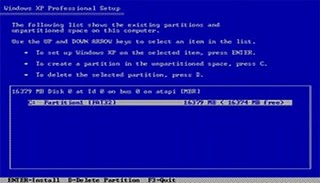 Tekan “ENTER” untuk langsung menginstal windows, “C” untuk membuat partisi hardisk anda, kapasitas partisi sesuai dengan kebutuhan anda, dalam satuan MB, selanjutnya jika anda membuat partisi dengan menekan tombol “C”, maka akan muncul gambar seperti di bawah ini :