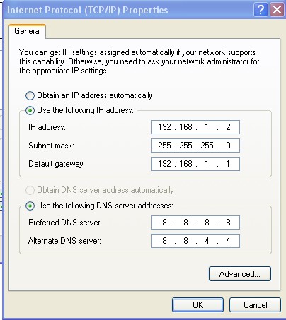 preffered DNS server isi dengan 8.8.8.8
