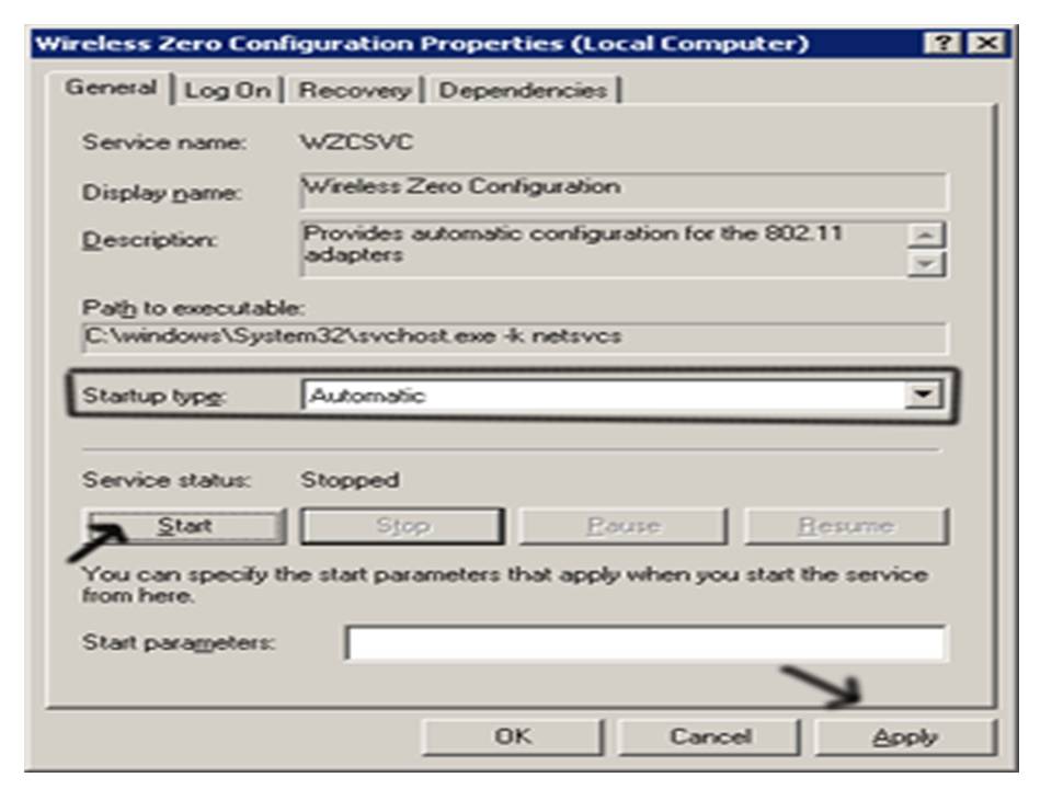 - Control Panel > Administrative Tools > Services > Wireless Zero Configuration