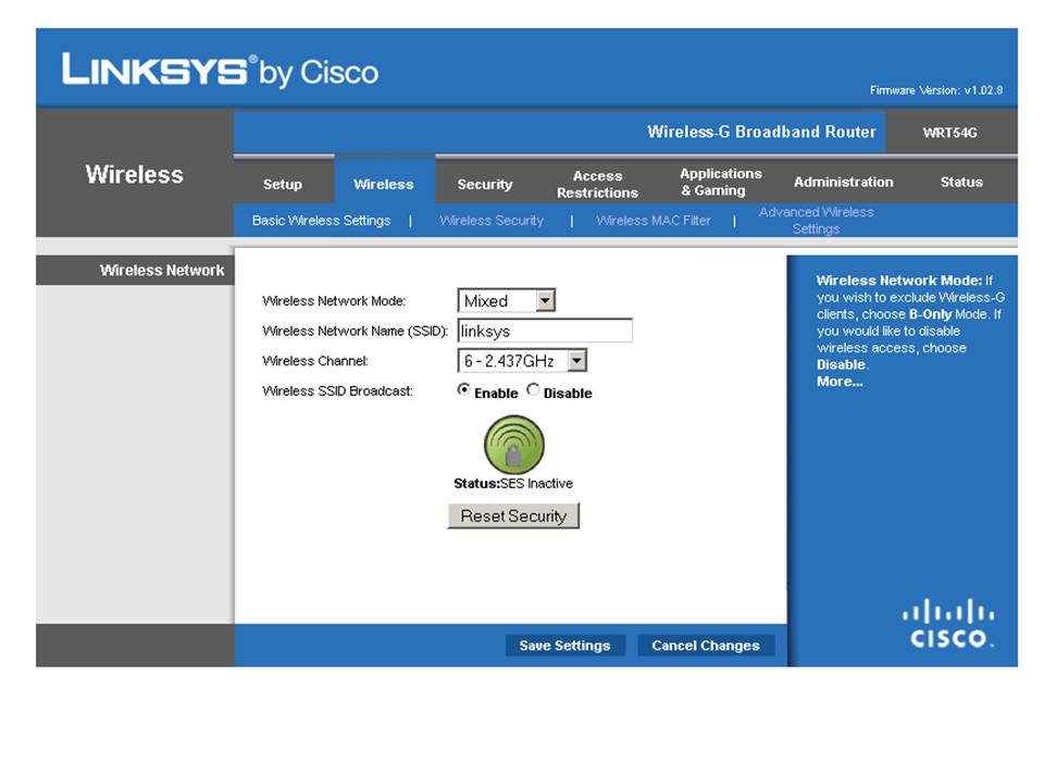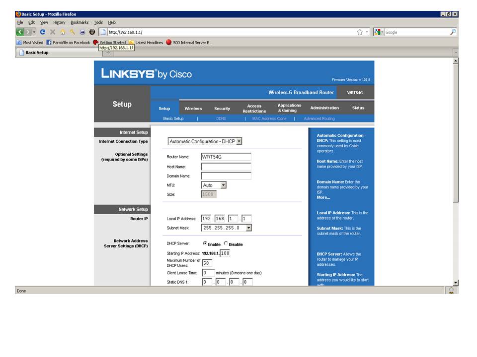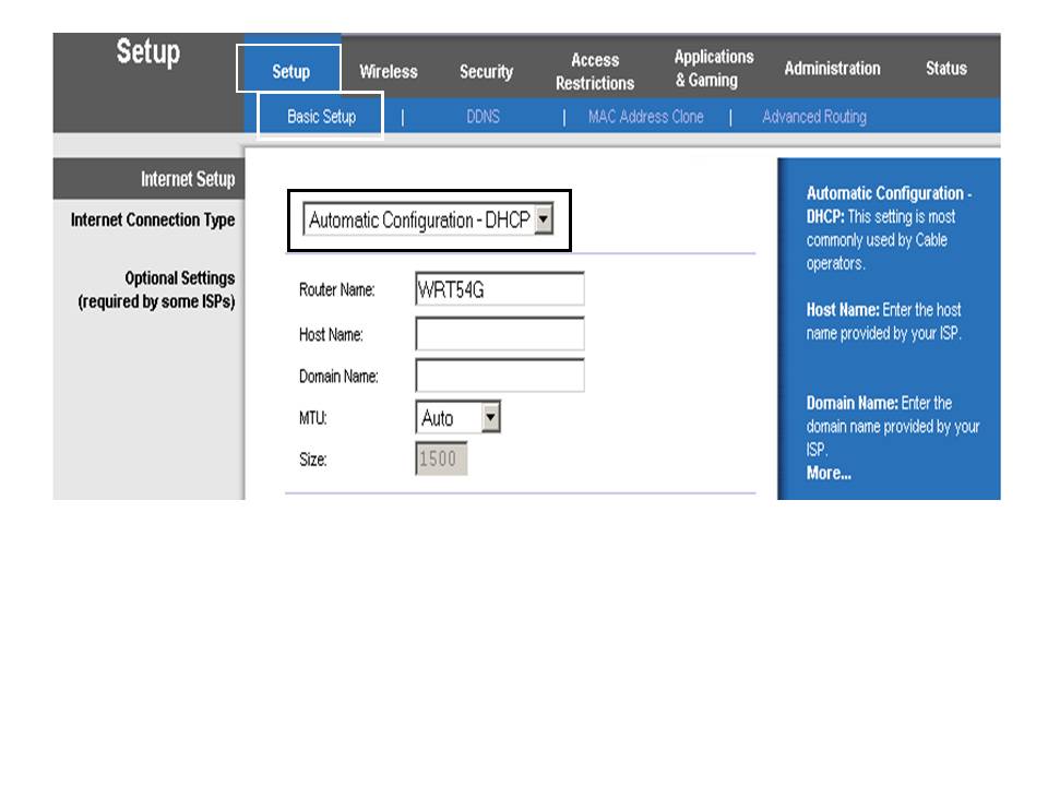 Gambar 2.3 Tampilan Menu Linksys WRT54GL