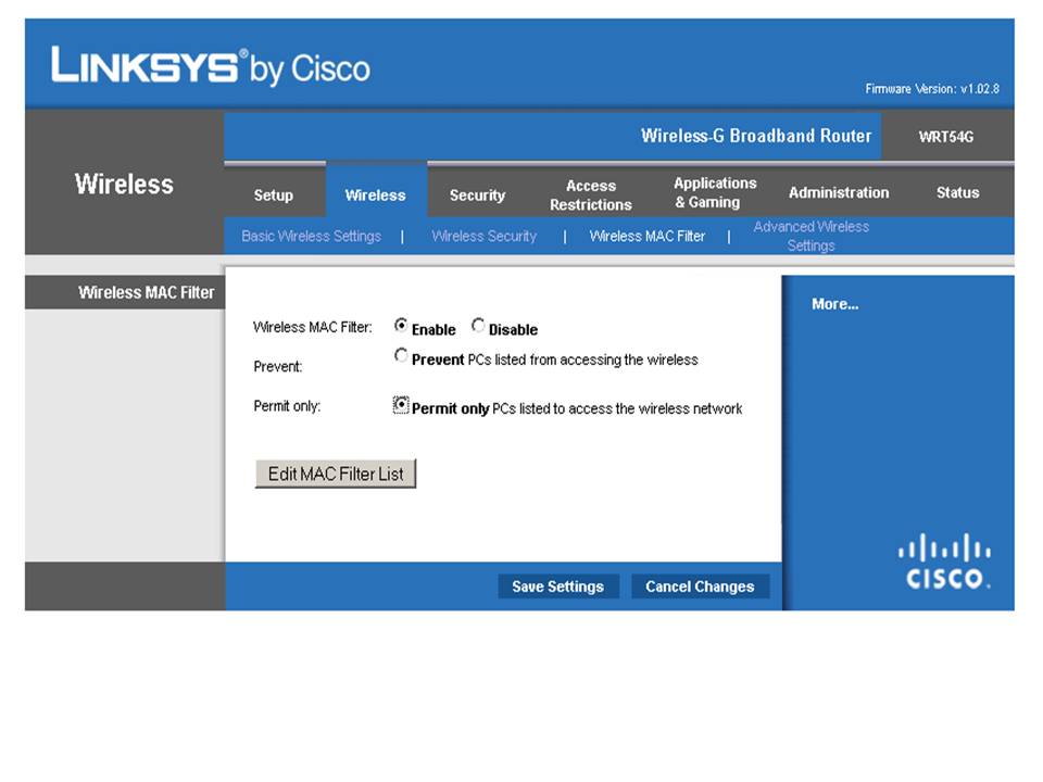 Untuk meningkatkan keamanan terhadap jaringan wireless yang kita miliki, sebaiknya kita mempergunakan MAC Address Filter, dengan MAC Address Filter kita akan membatasi komputer-komputer yang bisa melakukan koneksi ke SSID yang telah kita buat.
